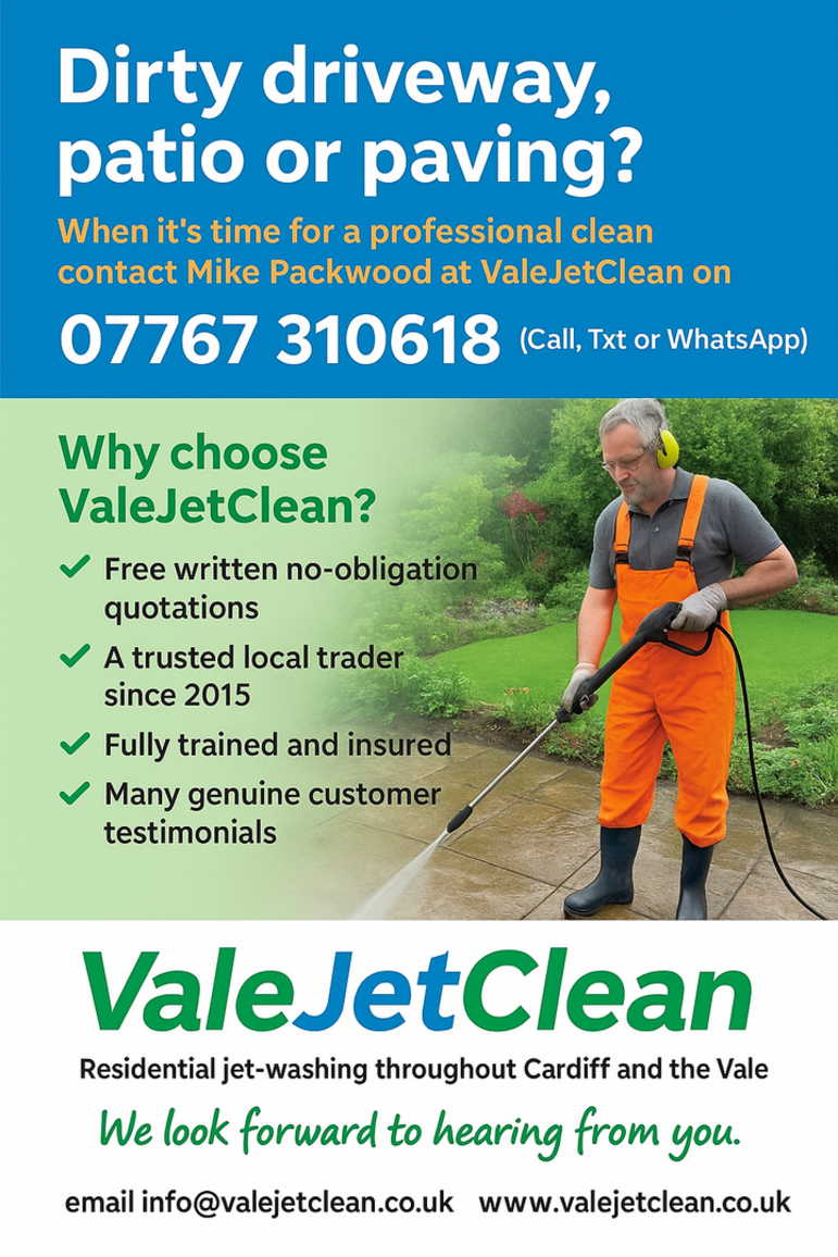 ValeJetclean was founded in Penarth in 2015 and is now based in Colwinston near Cowbridge. We're very proud to be celebrating 10 years as a trusted local trader. In the gallery above you can see just a few examples of our work and if you visit the testimonials page you'll can read some of the very kind things our customers have said about our results.